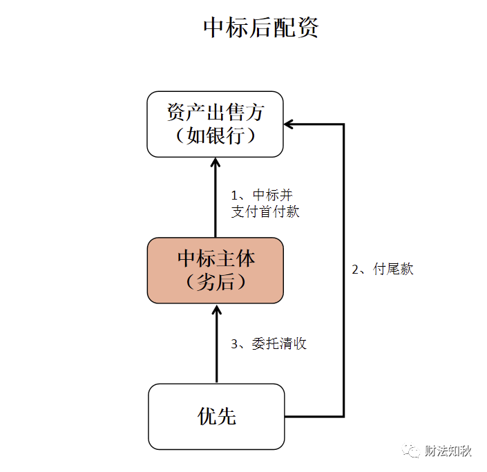 5、這種情況會(huì)比較少見,劣后中標(biāo)后,可能出于處置不及預(yù)期,或原談妥的優(yōu)先出了問題等原因,導(dǎo)致臨時(shí)再找其他優(yōu)先補(bǔ)足尾款,此刻優(yōu)先的風(fēng)控條件一般會(huì)比較嚴(yán)格。