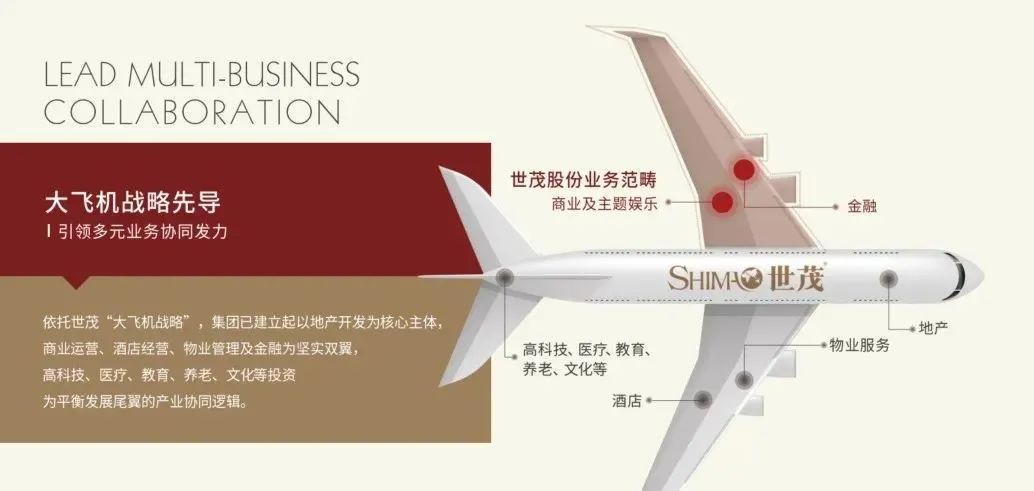 依托世茂的“大飛機(jī)”戰(zhàn)略,集團(tuán)已建立起了主體+雙翼+尾翼的產(chǎn)業(yè)協(xié)同邏輯。