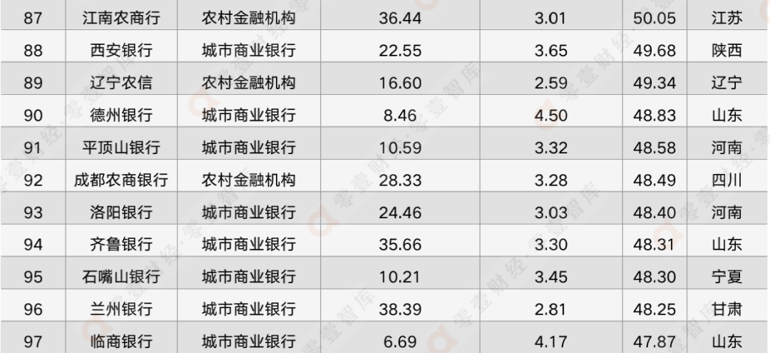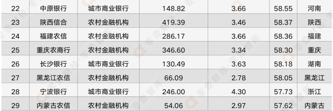(二)聚焦中小銀行:陜西信合、北京銀行等5家成為TOP 30佼佼者