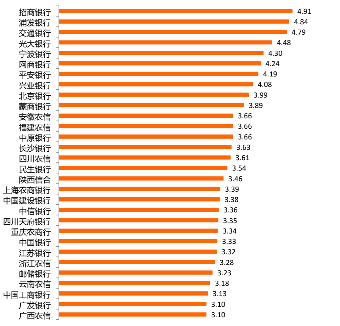 (一)排名綜述:浙江農信、江蘇銀行保持領先,浦發銀行入選前十名