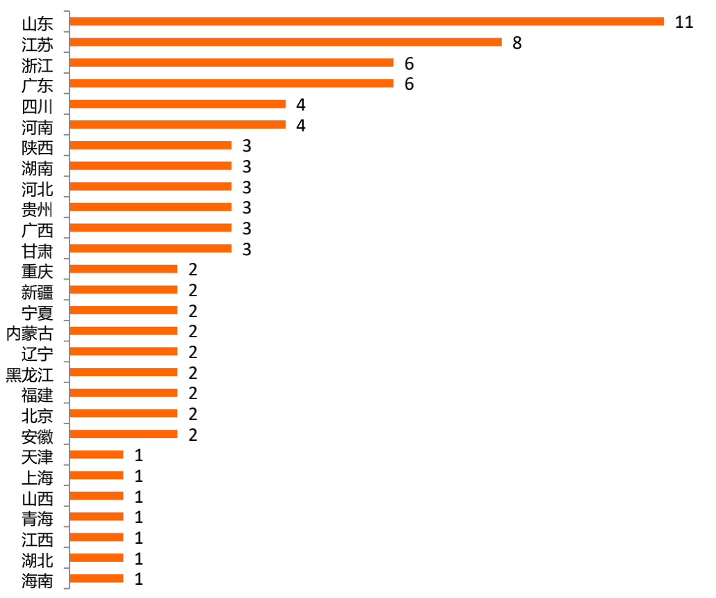 從中小銀行的排名順序來看,浙江農信位列農村金融機構第一,總排名為第14位;江蘇銀行位列城商行第一,總排名為第16位。零壹智庫研究發現,從入選中小銀行的所屬省份來看,山東省的入選數量最多,合計機構數量為11家。