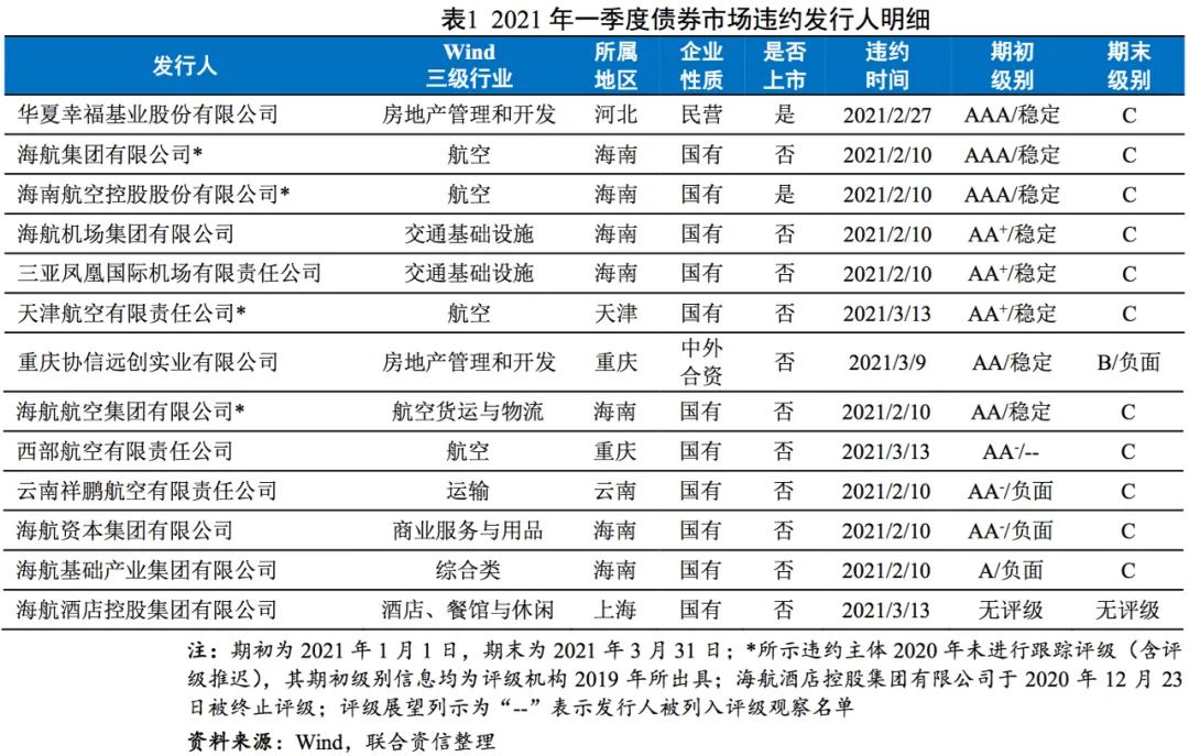 原標題: 【債市研究】2021年一季度中國債券市場評級表現和評級質量研究報告——海航系企業破產重整,違約風險定向集中釋放