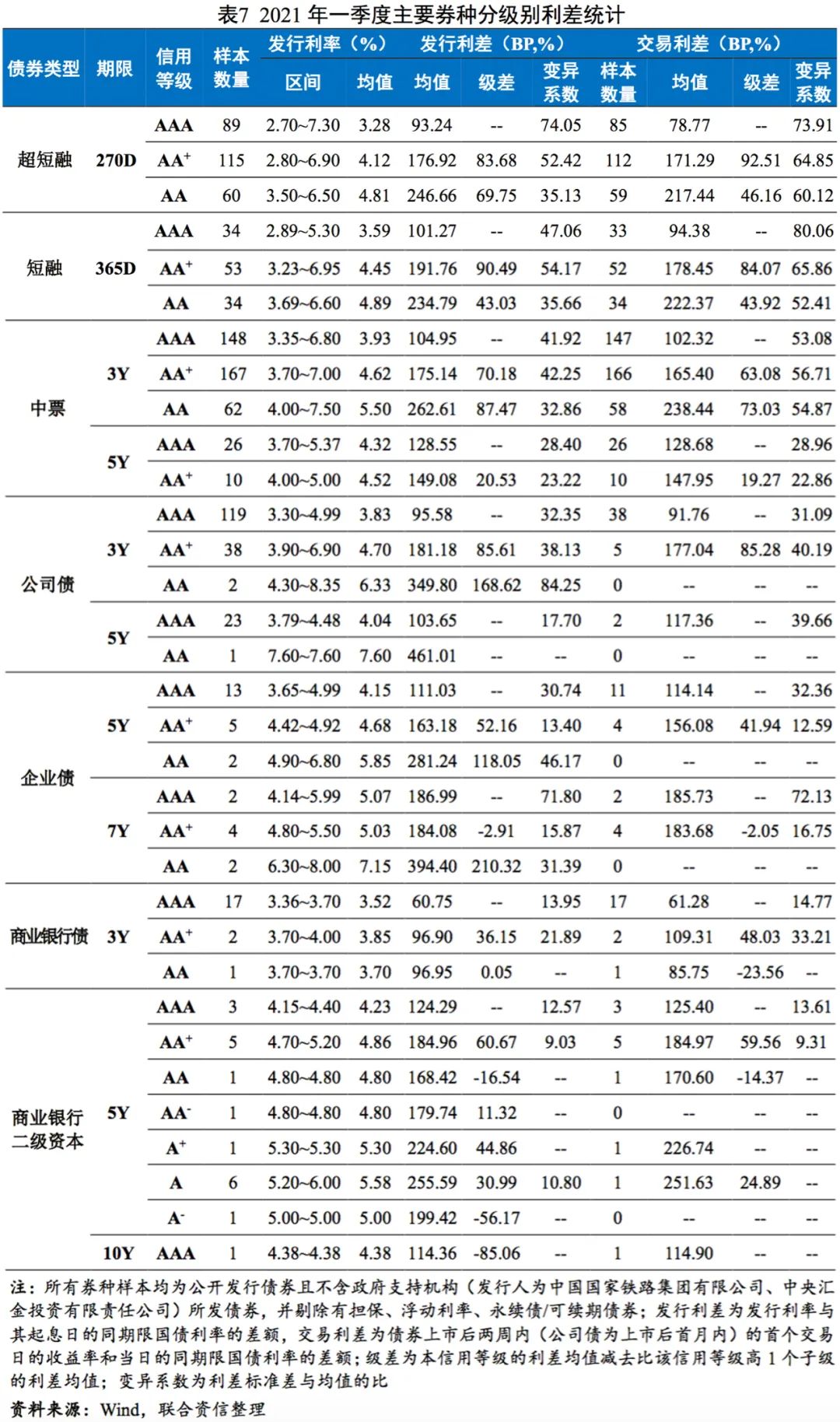 2021年一季度,信用等級(超短融、短融為主體信用等級,其他券種為債項信用等級)對債券發行利率、利差的影響主要體現在以下方面: