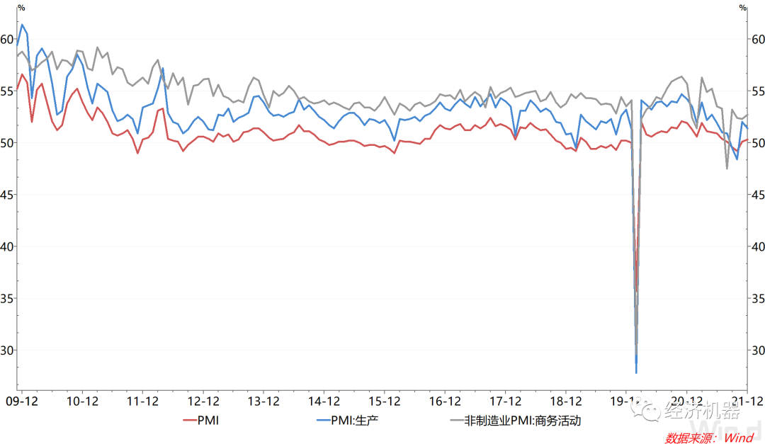 12月PMI錄得50.3%,弱于預期的50.5%,不過較上月的50.1%提升0.2個百分點,呈弱擴張狀態;非制造業商務活動指數為52.7%,較上月的52.3%提升0.4個百分點。整體看,當前經濟活動繼續企穩,不過相對偏弱,結構分化較為明顯,沒有一致向上的合力,反映經濟動能依舊不足,下行壓力依舊,仍需政策端繼續發力,托底維穩。