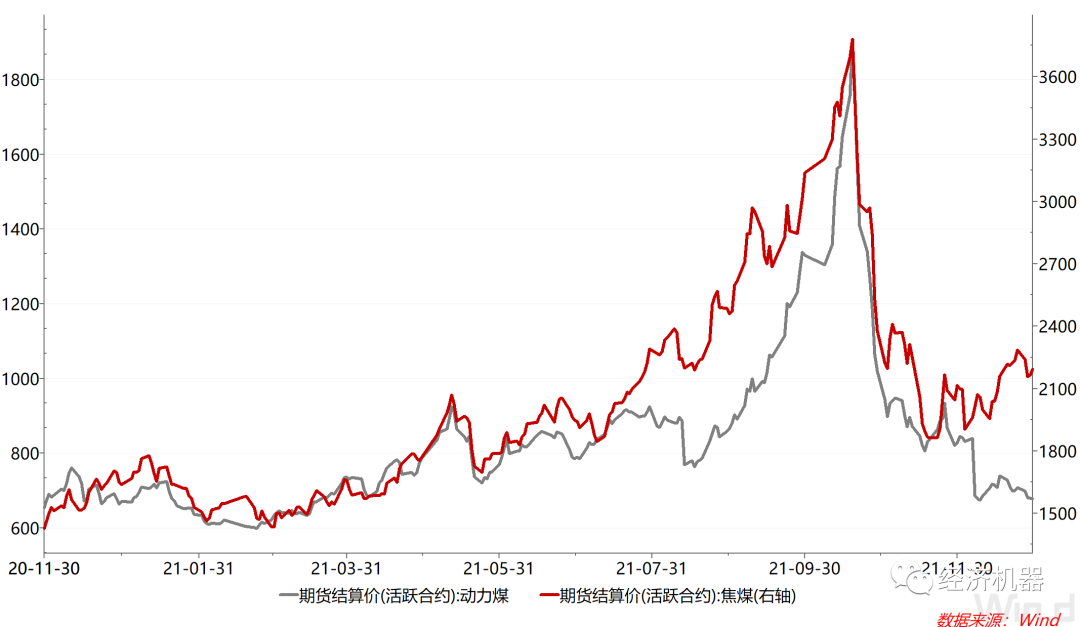 圖4 動力煤與焦煤價格走勢