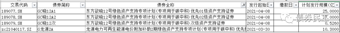 3、通過資產(chǎn)支持證券發(fā)行的碳中和債共4只,債券發(fā)行規(guī)模為62.826億元,發(fā)行人為中國東方資產(chǎn)管理股份有限公司和龍源電力集團股份有限公司。