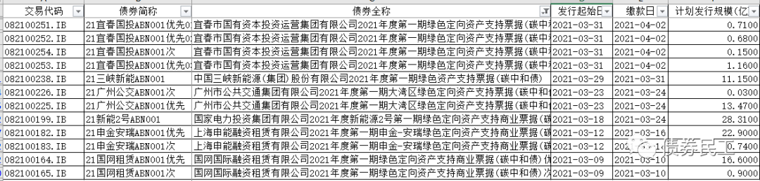 6、通過資產(chǎn)支持票據(jù)發(fā)行的碳中和債共12只,債券發(fā)行規(guī)模為96.80億元,發(fā)行人包括融資租賃公司、央企、城投公司等各種類型。