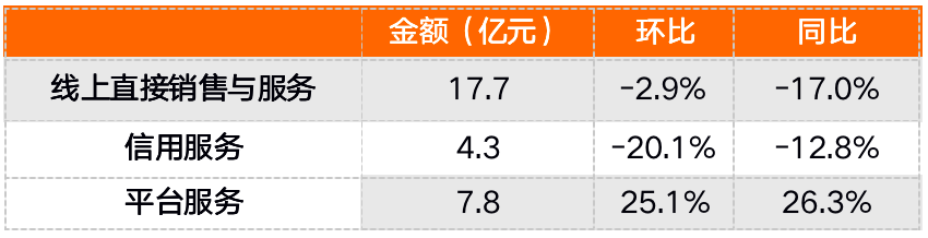 根據財報,三季度樂信的電商業務GMV為12.8億元,同比下降3.3%,而二季度的GMV為15億元,所以三季度環比下降了14.7%;線上直接銷售與服務收入17.7億元,同比減少17%,環比減少2.9%。