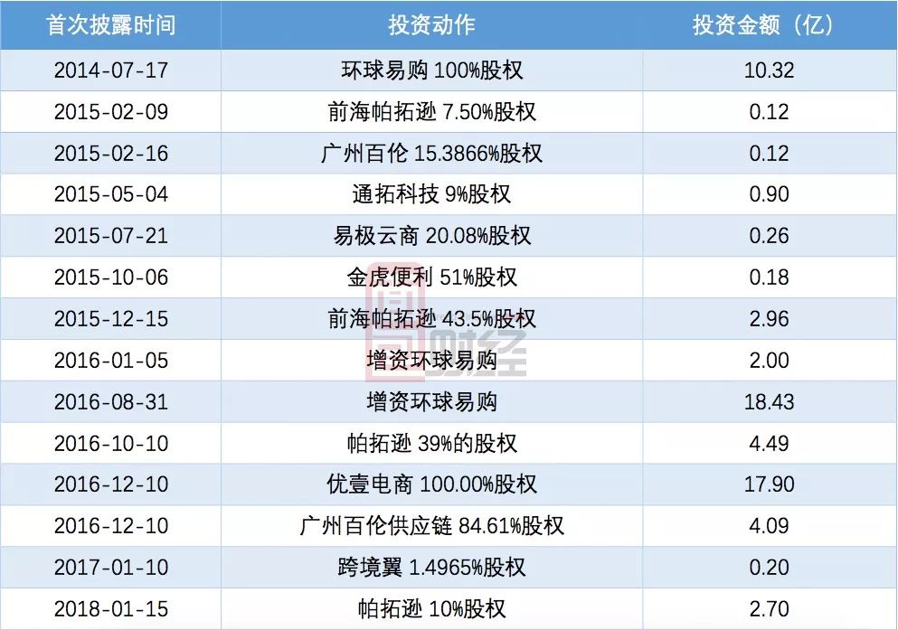 轉(zhuǎn)型電商之后,跨境通就開啟了“買買買”的連續(xù)并購模式,以下為根據(jù)公開信息整理的公司并購擴(kuò)張歷程: