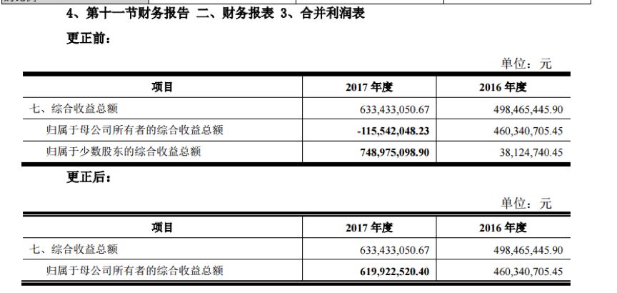 但是,跨境通的年報數(shù)據(jù)質(zhì)量并不太讓人放心。公司在2018年4月28日發(fā)布了2017年年度報告,但隨后又對年報的部分內(nèi)容進(jìn)行了修正,并在2018年5月5日發(fā)布了更新后的2017年年度報告。