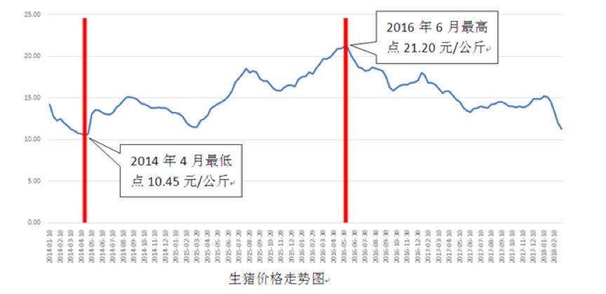 行業(yè)普遍的看法:本輪周期起點(diǎn)是2014年4月的10.45元/公斤,最高點(diǎn)為2016年6月的21.20元/公斤,之后價(jià)格震蕩下行,2018年3月份,價(jià)格最低下降至11.3元/公斤。