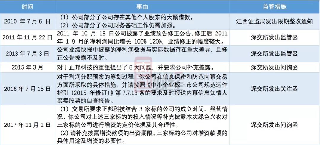 從2010年至2017年,正邦科技幾乎年年都能收到來(lái)自監(jiān)管部門的“問(wèn)候”,以下為根據(jù)公開(kāi)信息整理的相關(guān)事項(xiàng):