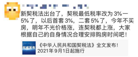 其中“房?jī)r(jià)要漲,契稅要漲,買(mǎi)房要趁早”的消息在朋友圈廣泛流傳,引起了不少恐慌!
