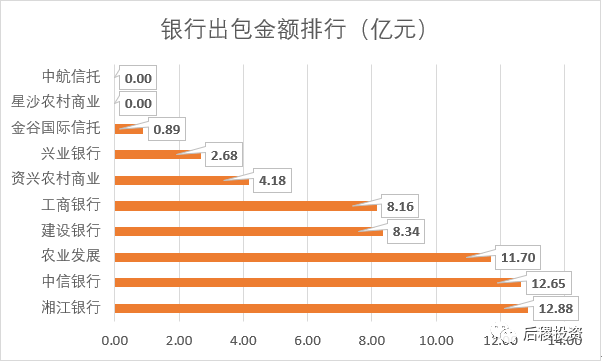 從數據來看,湘江銀行出包最多。星沙農村商業銀行、中航信托轉讓公告中未披露成交金額。