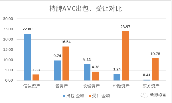 華融和信達在收包和出讓業務上分別領先。