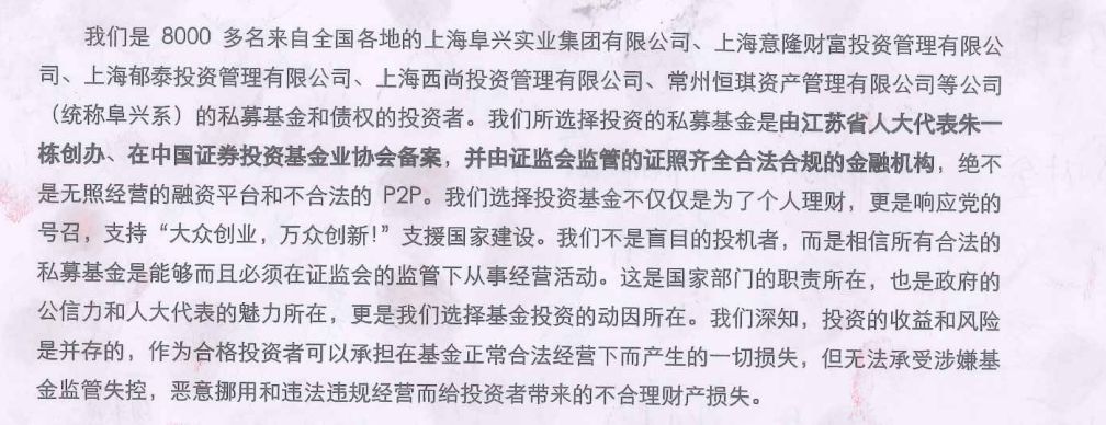 網(wǎng)上流傳的阜興投資者請?jiān)笗?/p>