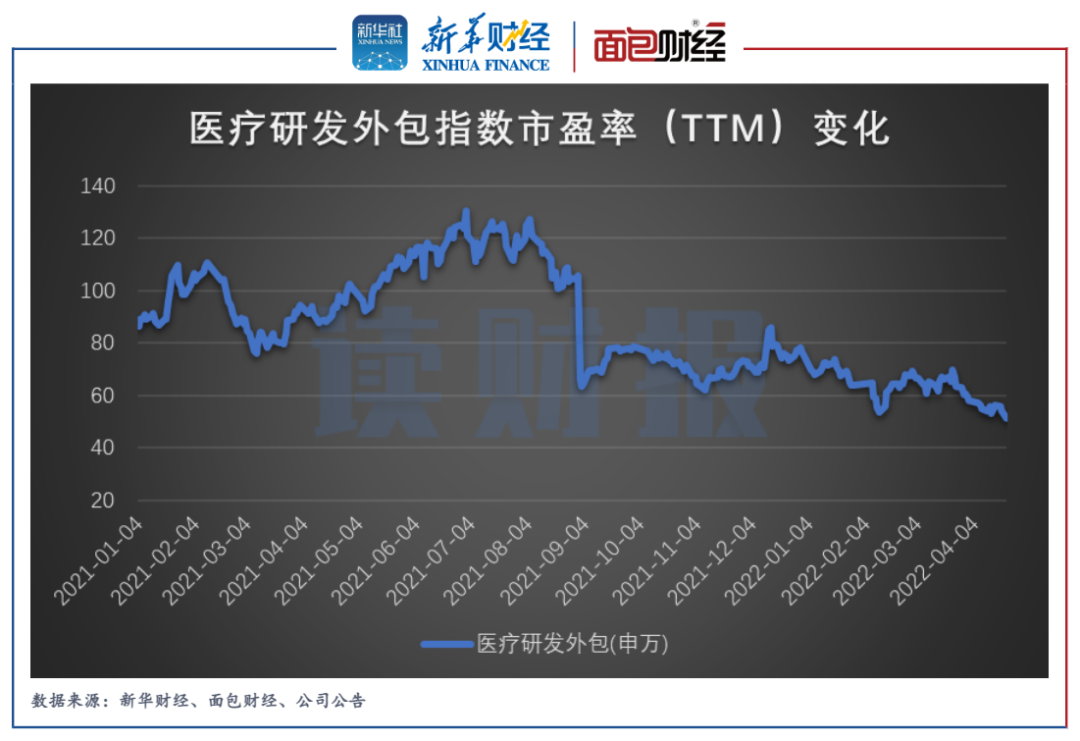 但另一方面,隨著股價(jià)上漲估值抬升、對(duì)業(yè)績(jī)持續(xù)性的擔(dān)憂等因素影響,醫(yī)療研發(fā)外包行業(yè)2021年下半年以來(lái)持續(xù)面臨估值下行壓力。