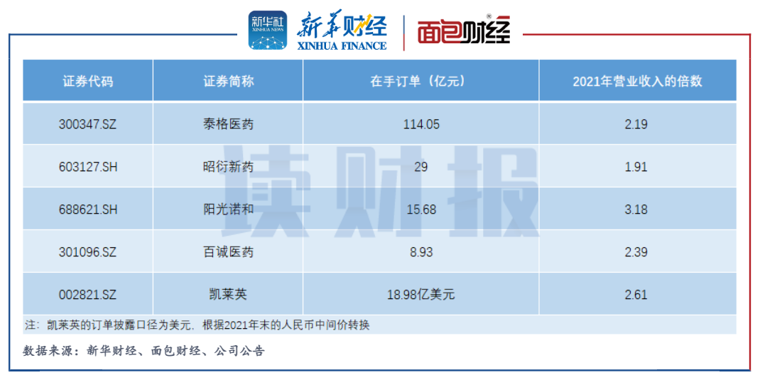 部分醫(yī)療研發(fā)外包企業(yè)在最新年報(bào)中披露了在手訂單情況。相較2021年的營(yíng)業(yè)收入,這些企業(yè)在手訂單的金額均接近或者超過(guò)前者的2倍,一定程度上保證了中短期業(yè)績(jī)?cè)鲩L(zhǎng)的持續(xù)性。