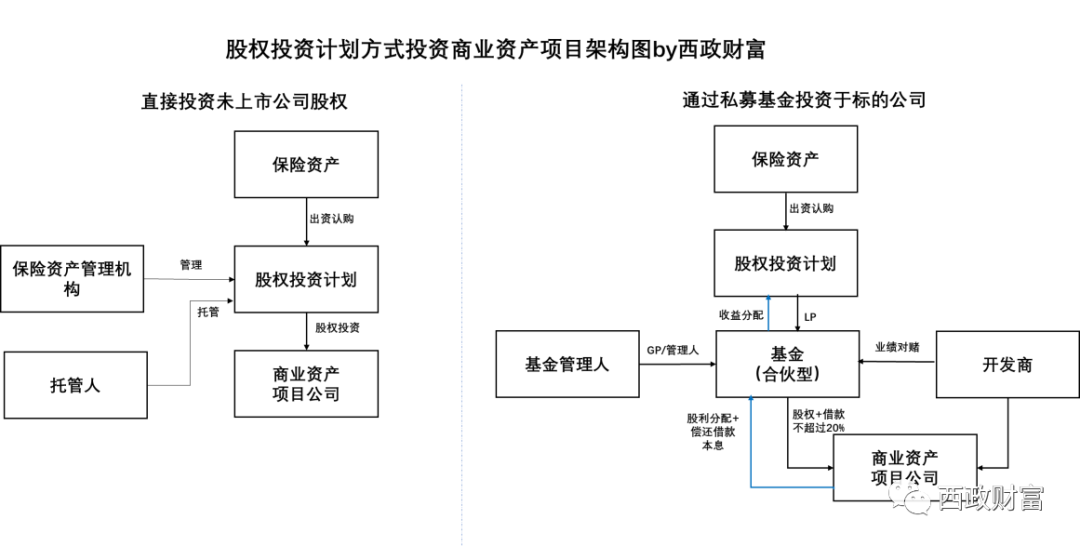 通過保險股權(quán)投資計劃進行投資最大的障礙在于項目方是否接受保險資金以股權(quán)投資方式介入。對于保險機構(gòu)而言,只要確保底層項目不存在保險監(jiān)管不允許投資的業(yè)態(tài)(如住宅),底層為純商業(yè)即可進行相關(guān)產(chǎn)品的備案。