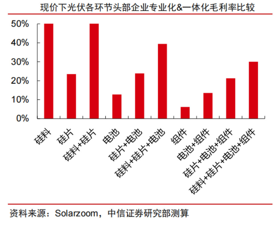 一體化的含義是整合資源,將產業鏈不同環節產生的利潤留存到終端環節,以實現降本增利的目的。