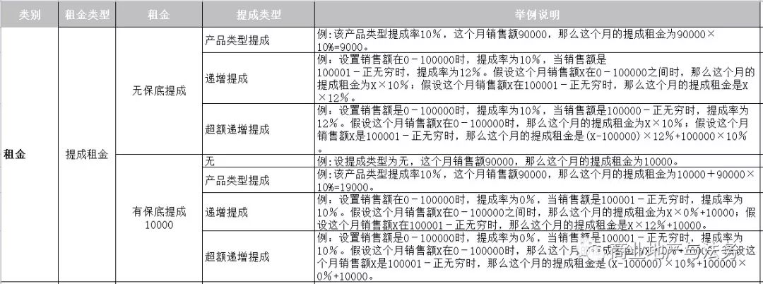3、固定租金+提成租金模式(也稱為:兩者取其高模式)