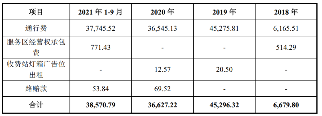 中交嘉通日常運營過程中產生的收入主要源于三類業務,分別為通行費收入、服務區經營權承包費收入、收費站燈箱廣告位出租收入。嘉通高速最近三年運營數據如下: