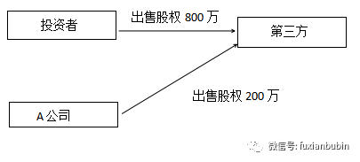 如,假設(shè)投資者投資A公司,若此時(shí)投資者占有的股份為20%,A公司的其他股東占有的股份為80%,此時(shí)若A公司擬出售1000萬股的股權(quán)給第三方,其交易結(jié)構(gòu)為: