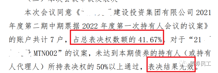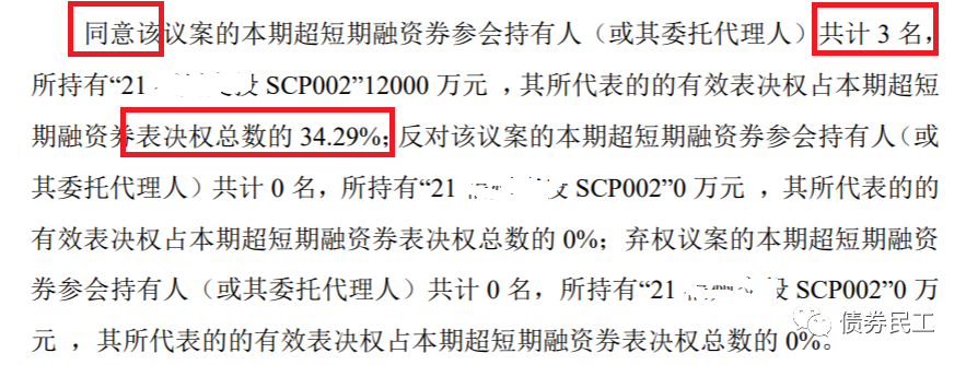 21年的SCP002發行規模3.5億元,債券持有人會議的參會比例34.29%,同意比例34.29%,該議案未獲得持有人會議表決通過。