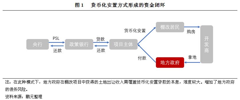 從宏觀來看,棚改貨幣化安置對(duì)于三四線城市房地產(chǎn)市場去庫存功不可沒。棚戶區(qū)改造短期內(nèi)大量釋放居民購房需求,而來自于PSL的貨幣化安置資金則直接提高了房地產(chǎn)到位資金,刺激房地產(chǎn)銷售向好、房價(jià)地價(jià)全面上行,對(duì)地區(qū)當(dāng)前經(jīng)濟(jì)穩(wěn)定和未來經(jīng)濟(jì)發(fā)展均具有明顯的拉動(dòng)效應(yīng)。有機(jī)構(gòu)曾測算,2017年我國棚改計(jì)劃開工600萬套,即使按照50%安置比例中性假設(shè),就可以實(shí)現(xiàn)2.55億平方米的去庫存規(guī)模。根據(jù)統(tǒng)計(jì)局的數(shù)據(jù),截至2018年5月末,全國商品房待售面積5.6億平方米,創(chuàng)最近46個(gè)月的新低。去庫存進(jìn)程告一段落。隨著去庫存任務(wù)的基本完成,爆發(fā)式增長的貨幣化安置方式帶來的諸多問題開始逐漸顯現(xiàn)。一方面,貨幣化方式被視作三四線城市住房價(jià)格非理性上漲的推手之一;另一方面,不規(guī)范的貨幣化安置項(xiàng)目則存在提高政府隱性債務(wù)風(fēng)險(xiǎn)的可能。一些地區(qū)不規(guī)范的貨幣化安置項(xiàng)目,本身土地出讓收入無法覆蓋政策性銀行的貸款本息,以土地出讓后的商業(yè)開發(fā)收入作為專項(xiàng)收入來源,實(shí)現(xiàn)項(xiàng)目的融資平衡。而事實(shí)上貨幣化安置過程中政府并不是商業(yè)開發(fā)主體,導(dǎo)致投資與收益的不匹配,地方政府財(cái)政無形中承擔(dān)了相當(dāng)部分的還款責(zé)任。