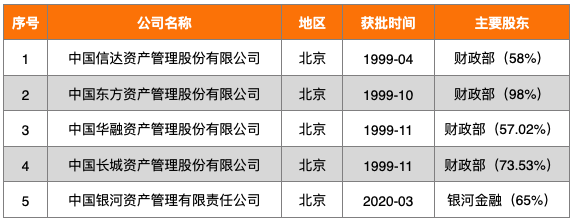 彼時,監管機構鼓勵AMC機構從央行編制的11家出險房企名單中挑選資產。這11家出險房企為:綠地控股、融創中國、世茂集團、中梁控股、榮盛發展、奧園地產、陽光城、融信中國、佳兆業、廣州富力、中南建設。1月份名單基本與最新列出的12家出險房企相同,唯一不同的就是中國恒大。而中國恒大則是整件事情的緣起,正是中國恒大債務違約引發金融巨震后,GWY金融委制定穩定房地產市場計劃, AMC機構出手紓困出險房企正是該計劃的一部分。提及不良資產管理,往往會聽說四大AMC機構或者五大AMC機構。