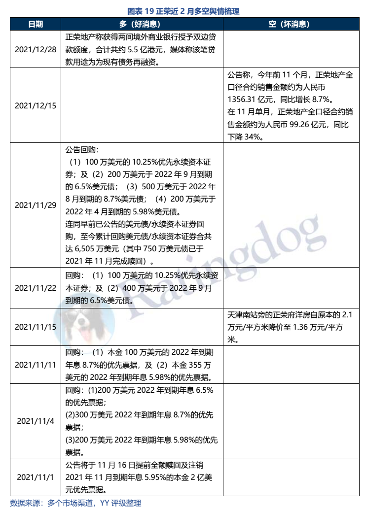 (6)尋求金融機(jī)構(gòu)支持:世茂尋求招行增加敞口、和信托談?wù)蛊?,禹洲找橡?shù)資本融資(未果),正榮獲得境外銀行雙邊貸款。