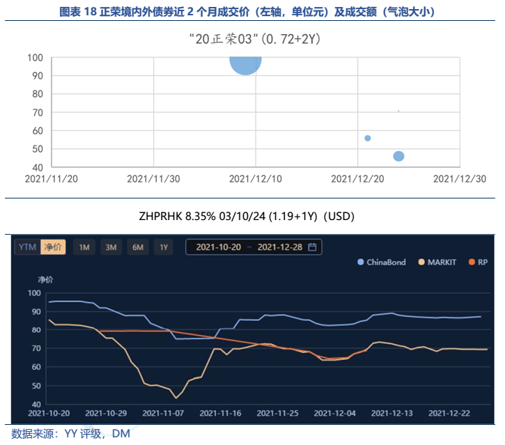 投資人對(duì)于正榮的擔(dān)憂(yōu)主要在于新增土儲(chǔ)質(zhì)量偏弱,以及對(duì)項(xiàng)目權(quán)益占比低+非主要操盤(pán)方,或影響后續(xù)資金回款。目前正榮境內(nèi)的“20正榮03”價(jià)格跌至40元檔,而境外債處于70元檔。