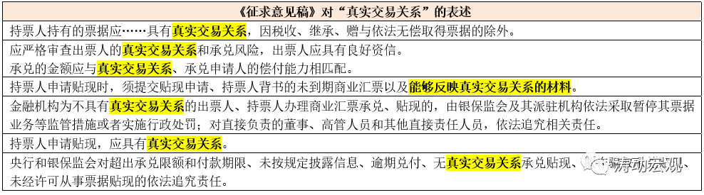 《征求意見稿》針對(duì)真實(shí)交易關(guān)系給予更多著墨,其中的背景是近年來票據(jù)空轉(zhuǎn)問題較為猖獗,這里的關(guān)鍵在于哪些材料能夠反映真實(shí)交易關(guān)系(主要指增值稅發(fā)票和商品交易合同復(fù)印件)。具體看,