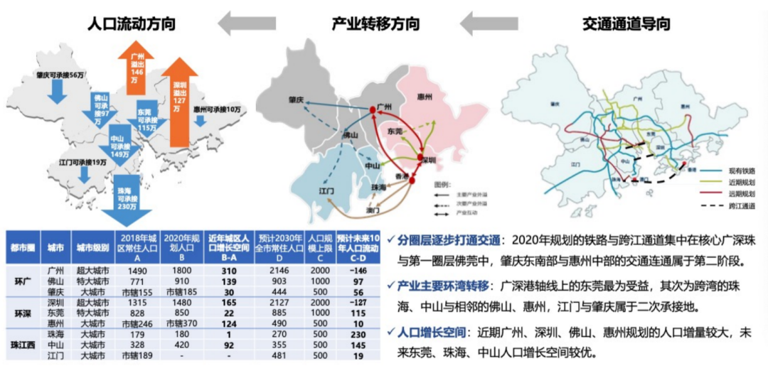 除了城市輪動、市場輪動的周期特征之外,商業地產最為關注的應該是“人”。我們依照“消費看人口、人口看產業和交通”的邏輯來分析珠三角城市的商業投資價值。