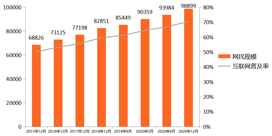 圖 2:2015-2020年我國網(wǎng)民規(guī)模與互聯(lián)網(wǎng)普及率