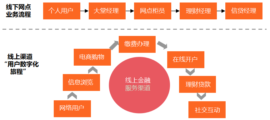 圖 3:線下網(wǎng)點與線上渠道辦理業(yè)務(wù)的流程差異點