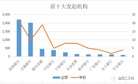 再來看個人消費貸ABS,個人消費貸ABS的發行機構主要為商業銀行及持牌消費金融機構,前十大發行機構如下圖所示。