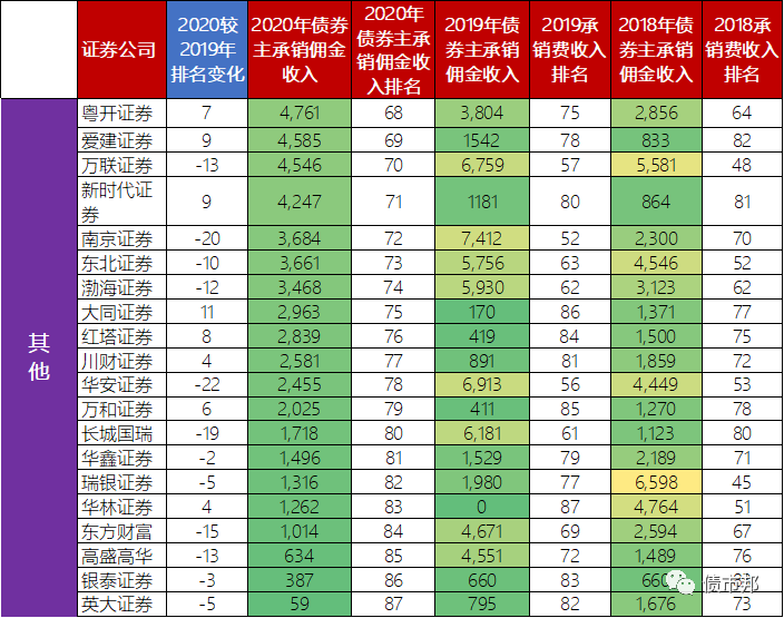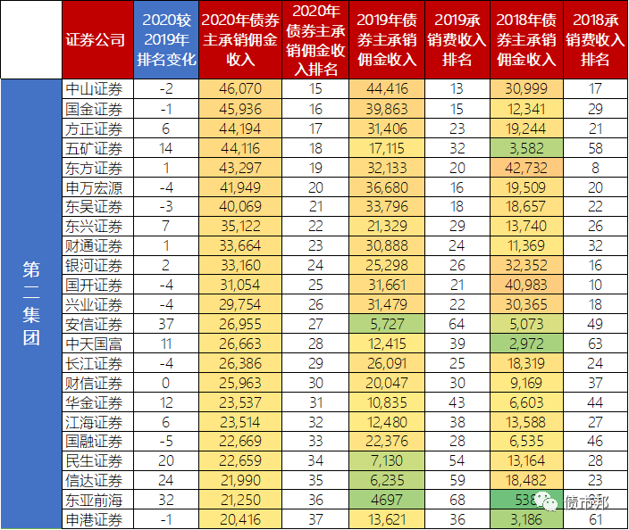 原標題: 2020證券公司債券承銷收入對比分析