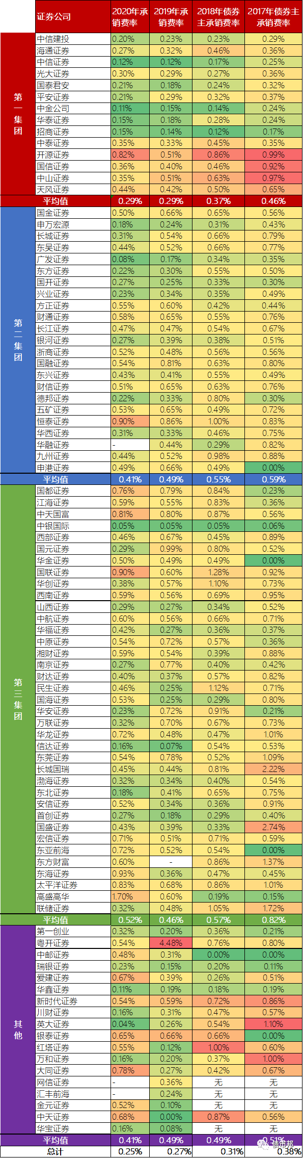 具體承銷費率數(shù)據(jù)如下表所示,因為承銷結(jié)構(gòu)的差異,不同機構(gòu)之間沒有橫向可比性,只是提供一個感性的認識。