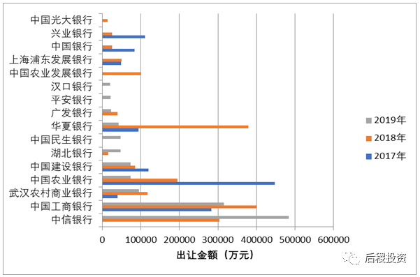 從統(tǒng)計(jì)數(shù)據(jù)上看,全年出讓債權(quán)總量最大為信達(dá)資產(chǎn),債權(quán)本金超9億,成交折扣率0.59;全年出讓戶數(shù)最多為浙商資產(chǎn),總戶數(shù)達(dá)42戶,成交折扣率0.33;銀行方面,平安銀行作為主要出讓方,出讓債權(quán)本金接近2億,成交折扣率0.38。相比于18年大部分都是單戶債權(quán)成交記錄,今年主要以兩戶及以上為主,且成交價(jià)基本與起拍價(jià)相同。