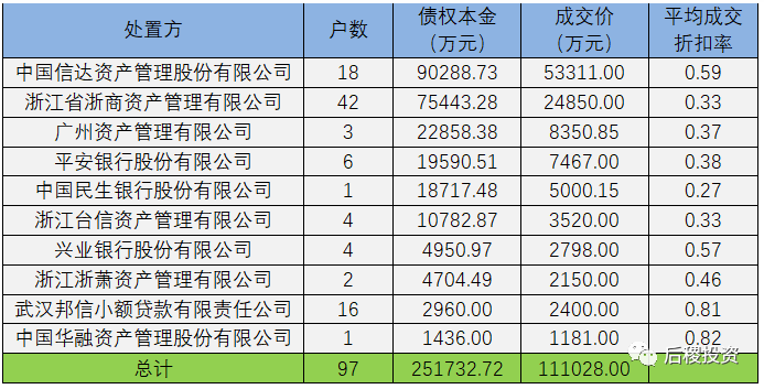 由于東方資產(chǎn)和信達(dá)資產(chǎn)成交記錄未披露債權(quán)金額,暫不予分析。
