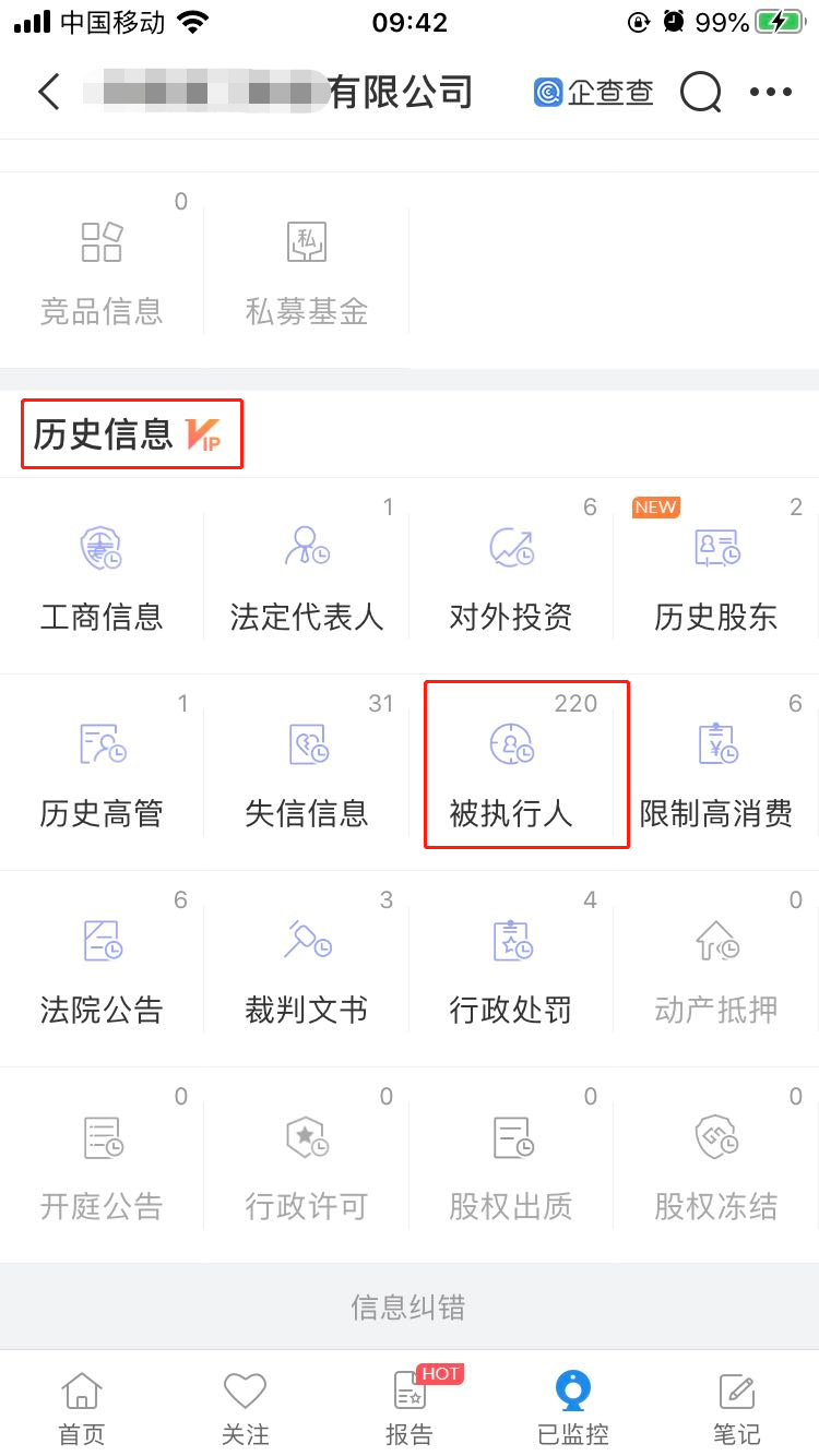 借助【企查查】、【啟信寶】等第三方平臺中【歷史被執(zhí)行人】功能,進(jìn)行信息分析。第三方平臺通過對執(zhí)行網(wǎng)的公開數(shù)據(jù)進(jìn)行比對,將已結(jié)案撤網(wǎng)的執(zhí)行案件歸入【歷史被執(zhí)行人】中。