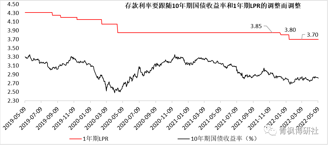 存款利率的變化≈1年期LPR調整幅度或10年期國債收益率趨勢性變化(2)