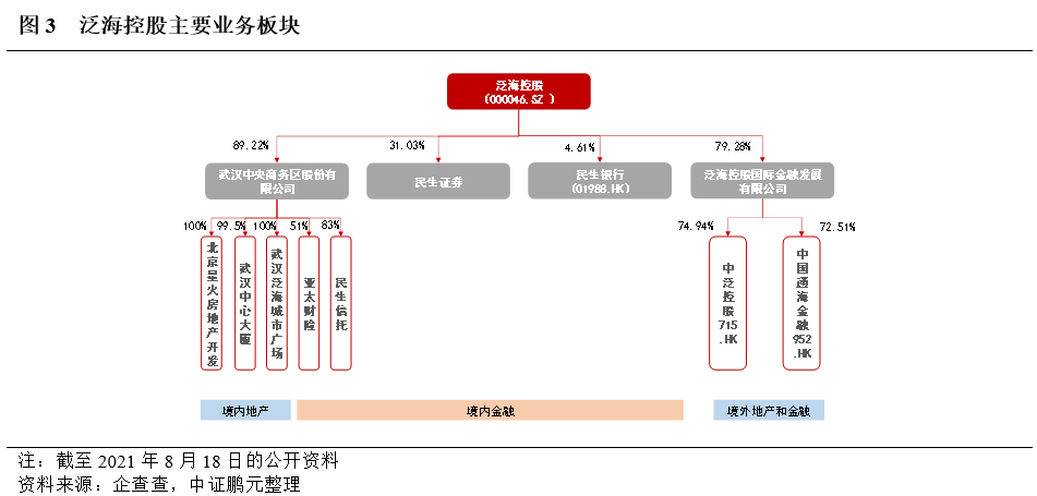 第五,受政策影響,民生系對泛海系支持能力下降。長期以來,民生系是泛海系重要的資金支持方,截至2020年末,泛海系在民生銀行的貸款余額超200億元。但受監管政策和信用風險事件影響,民生系對泛海系的支持力度有所弱化,其中,2021年7月公司控股股東中泛控股持有的民生銀行股份因債務糾紛被司法凍結和拍賣,但隨后與債權人達成協議,撤銷上述拍賣。中泛控股及其關聯方持有民生銀行可行使表決權的股份數合計約30.40億股,占該行總股本的6.94%,其中87.09%已被質押,此次遭司法凍結并拍賣的股份占其持有股份比例為12.79%。此外,根據公開信息,民生信托、民生財富投資管理有限公司和泛海投資集團有限公司基金類資金池產品基本已全線延期兌付,規模超過300億元。