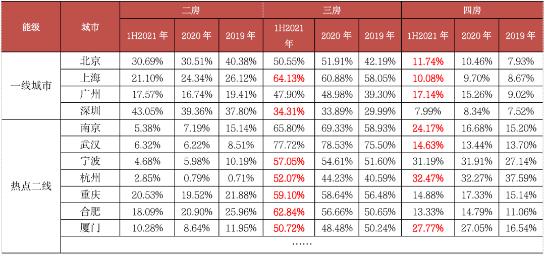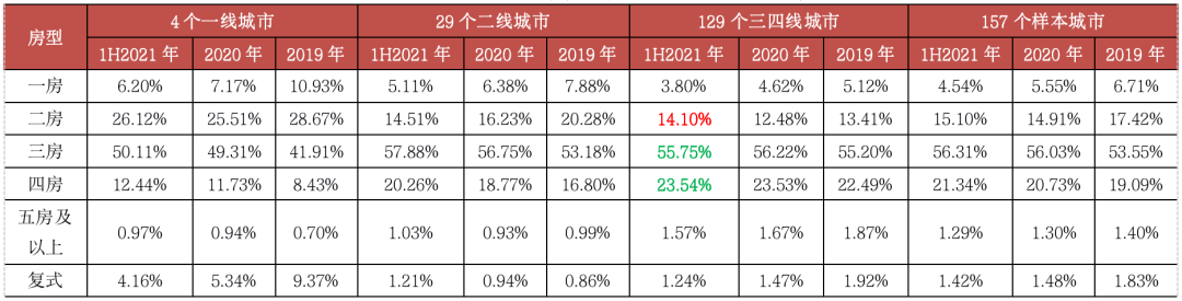 2021年上半年,改善性需求持續(xù)釋放,三房依然穩(wěn)居成交主力。