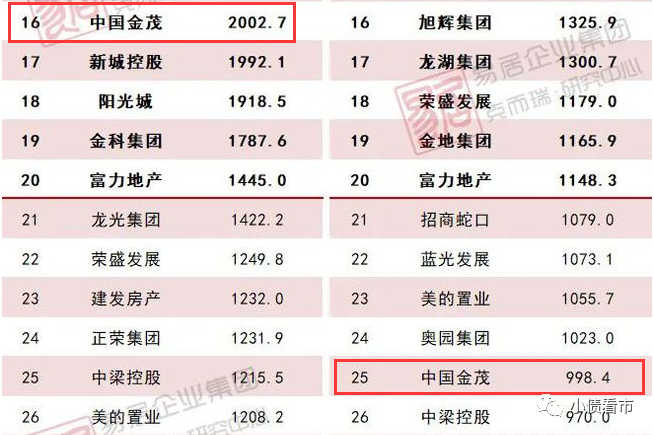 2018年,中國金茂銷售額首次突破千億大關,成功升級為千億房企;2019年其在克而瑞房企年度業績排行榜中首次進入房企前20強,排第18名。