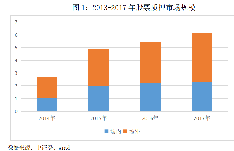2013年政策放開場內(nèi)質(zhì)押后,場內(nèi)規(guī)模不斷提升,從2014年的0.27萬億元,上升到2017年底的2.7萬億元。