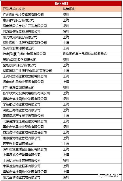 3、已發(fā)行物業(yè)ABS核心企業(yè)