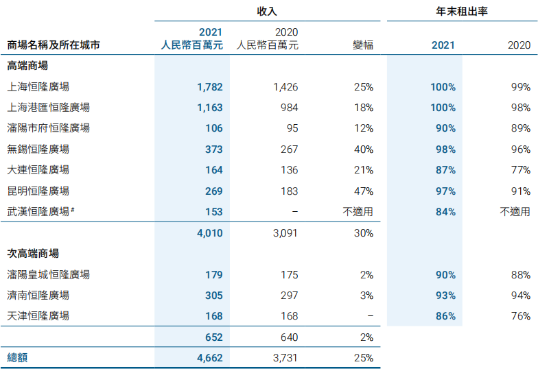 租賃收入上升47%,截止至年底,商場店鋪近乎悉數租出;