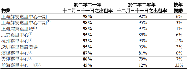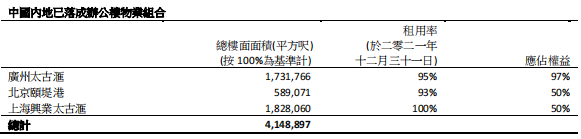 截至至2021年12月底,在內地之自占已建成收租物業(yè)組合增加至約810萬平方呎。